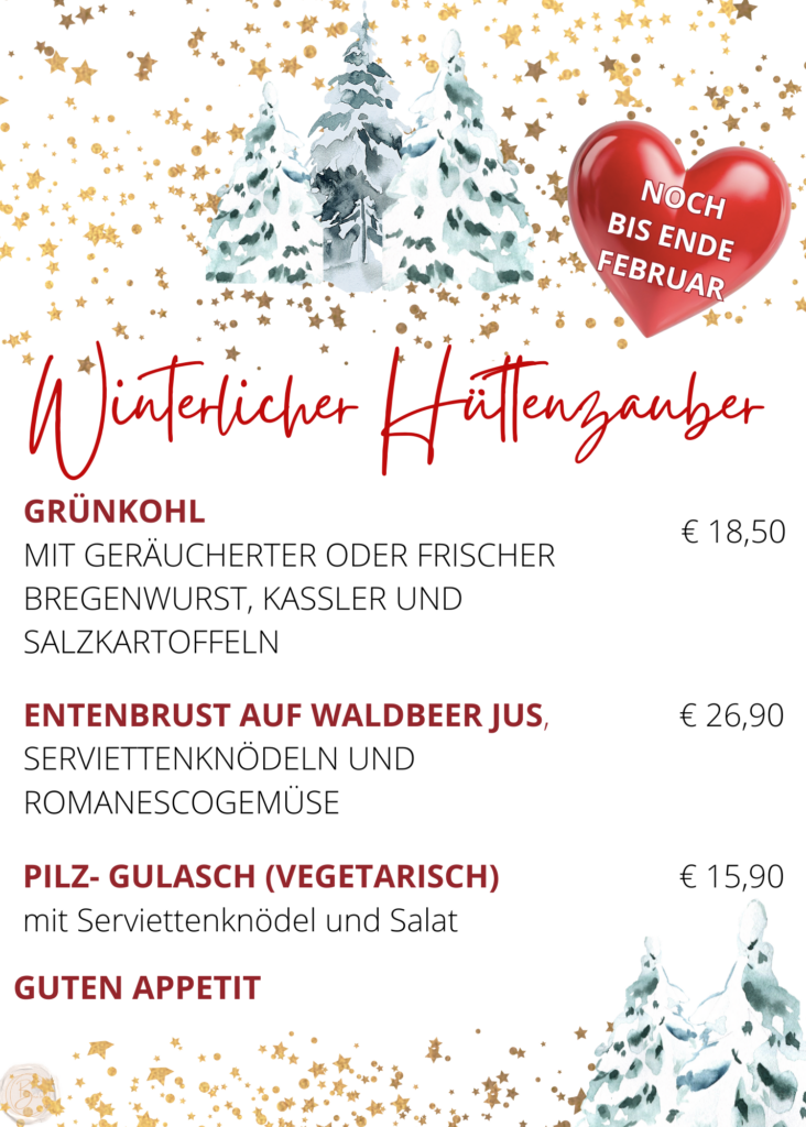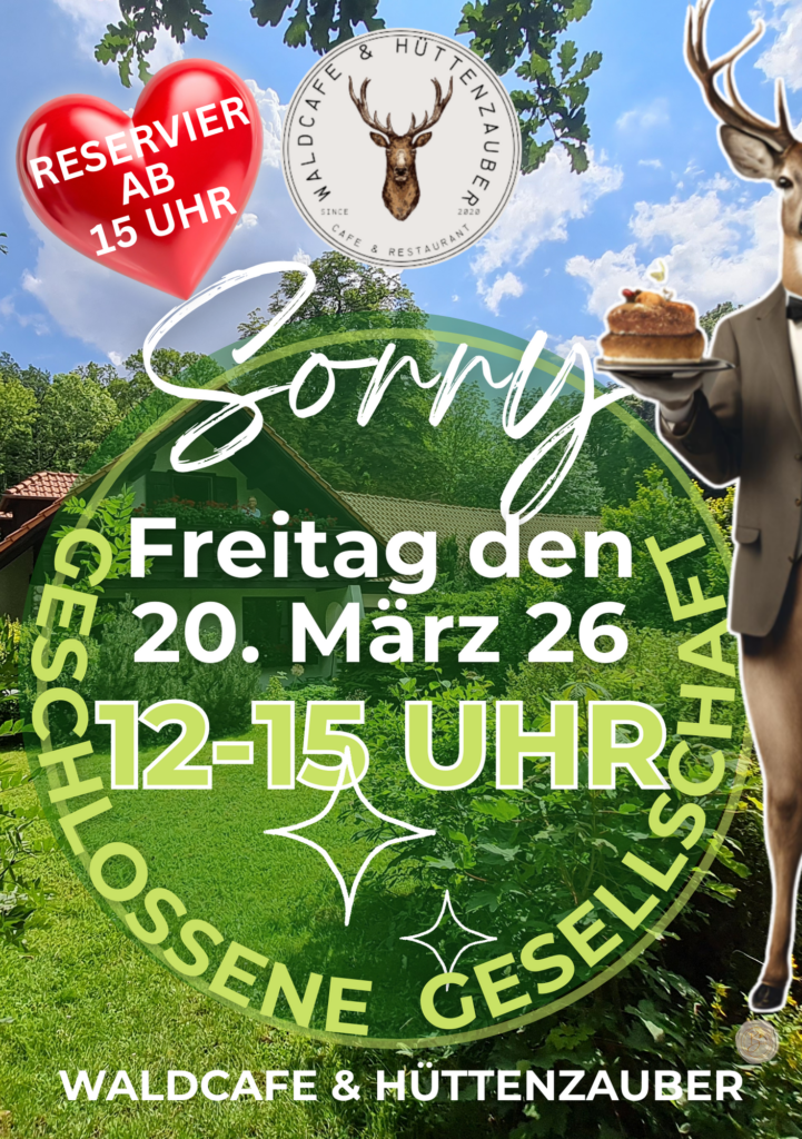 Bitte reserviert unter Tel. 05346 3009 666! Wir freuen uns auf Euch! Euer Team Waldcafe & Hüttenzauber Liebenburg.